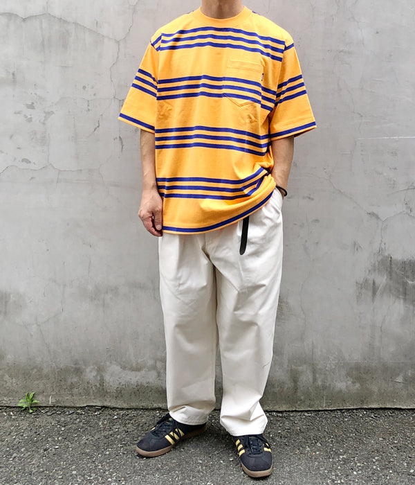 LQQK Studio/S/S RUGBY WEIGHT POCKET TEE (ORANGE x NAVY)
