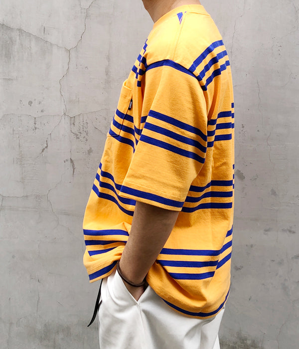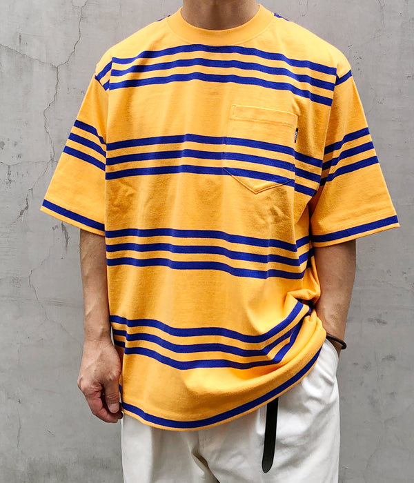 LQQK Studioから、S/S RUGBY WEIGHT POCKET TEEが入荷しました。ヘビーウェイトなコットン素材を使用し、3本線のボーダー柄SS。柄合わせした胸ポケットに配置したピスネームがポイント。