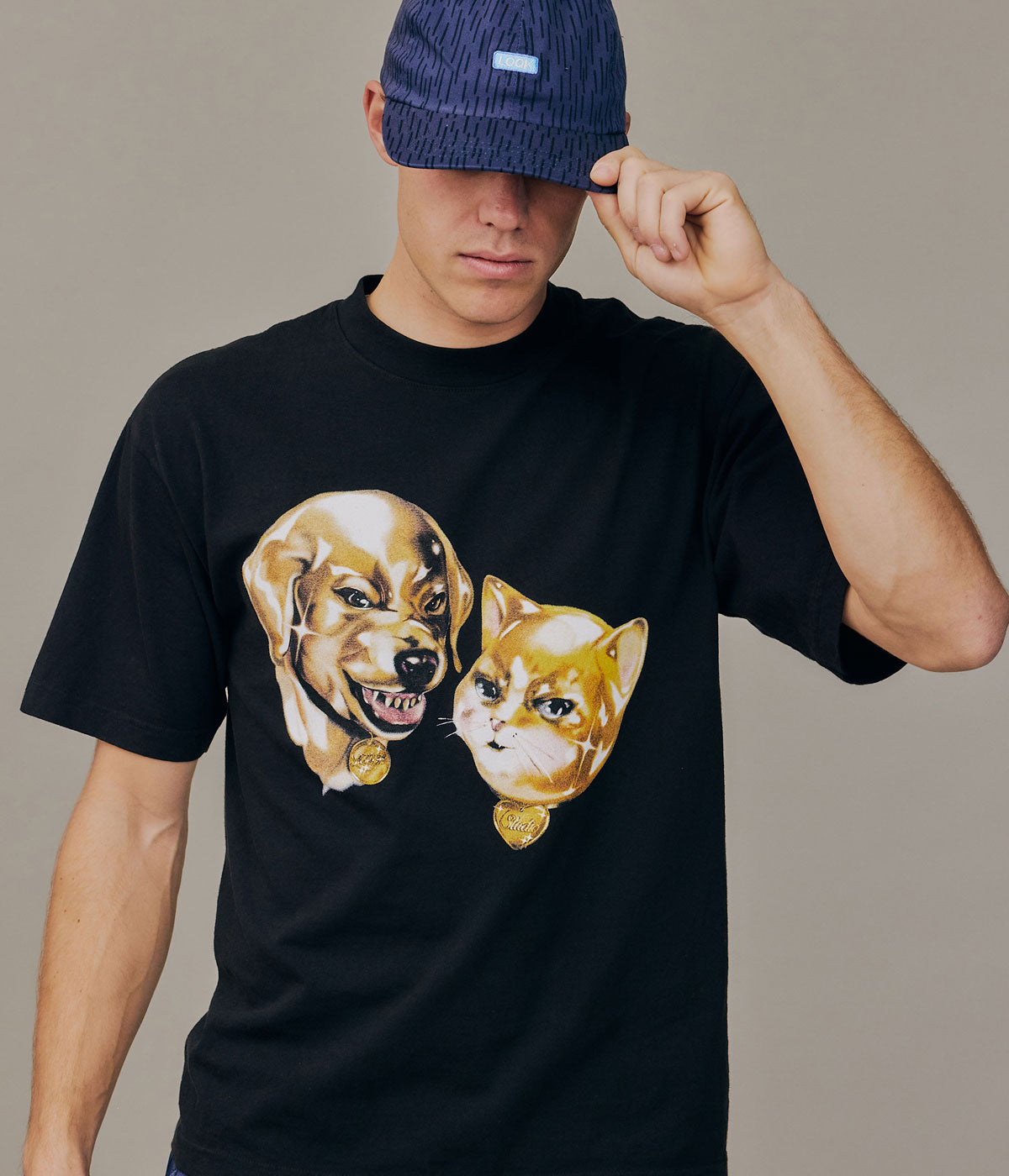 LQQK Studioから、Sassy Pets teeが入荷しました。ちょっと生意気げなドヤ感とキラキラ感のある犬と猫のグラフィックによる半袖Tシャツです。首輪のゴールドチャームに、LQQK Studioのロゴが輝き、左袖口に筆記体でLQQK Studioのロゴ入り。常夏の主役級アイテムです、お早めにどうぞ!