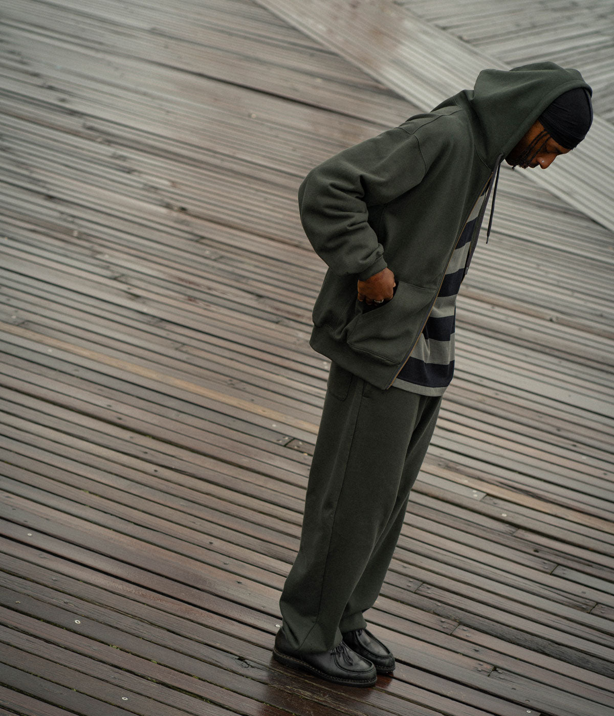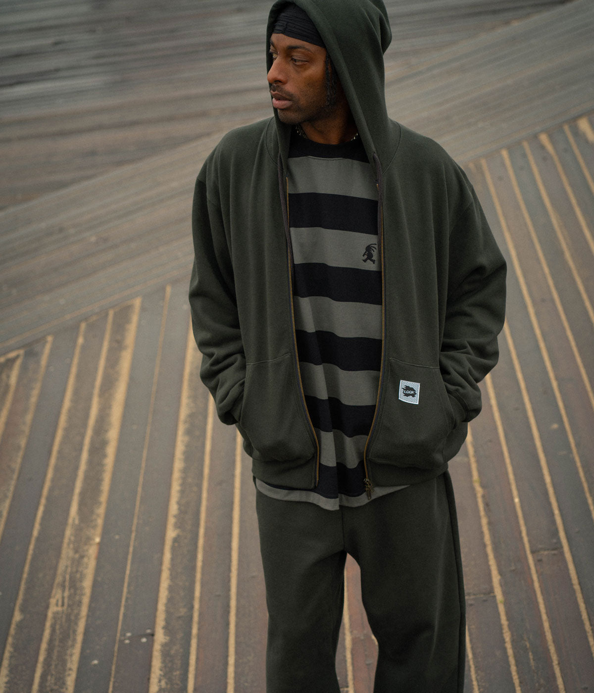 LQQK Studioから、SWEAT ZIP HOODIEが入荷しました。フェード感のある表情のジップアップフーディー。左マフポケットにLQQKのロゴパッチをワンポイントデザイン。フロントはダブルファスナー、サイドからスリーブまでエクスパンションガゼットを備えた変形リバース仕立て。裏パイル仕立てでオールシーズン使える1着。