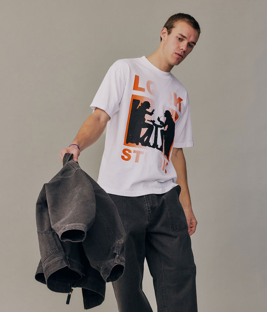 LQQK Studioから、The Lads teeが入荷しました。オレンジとブラックを基調に、フロントに大きくLQQKのロゴ入りグラフィックをデザインした半袖Tシャツ。常夏の主役級アイテムです、お早めにどうぞ!