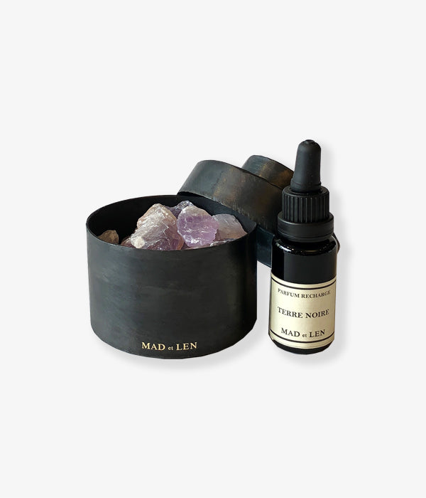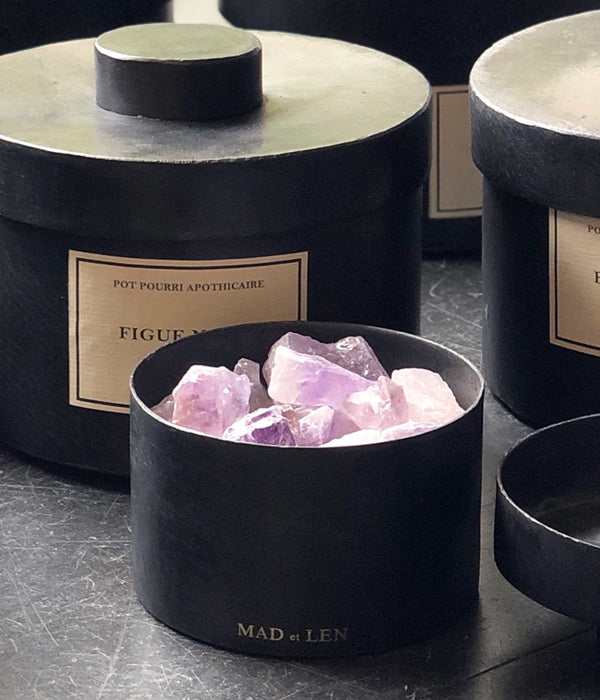 MAD et LENからFLAT POT POURRI ROSE MINIが入荷しました。高貴な輝きを放つ天然石のアメジストにクリスタルが添えられたポプリタイプのルームフレグランス。オイルは世界各地から厳選された花や木、ハーブやスパイスから抽出した天然エッセンスを昔ながらの手法を用いて作られています。香りのバランスは蓋の開閉と付属のリチャージオイルで、使う場所やシーンによって調節し楽しめます。鉄の器はモロッコの職人によるハンドメイド。その佇まいはアート作品のようにひとつひとつ違う表情を持ち、インテリアとしても存在感を放ちます。