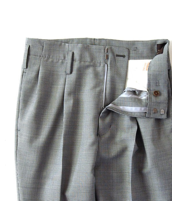 クラシカルなディティールに目を奪われるHoundtooth Check Slacks。テーパードの掛かったラインが美しい一着。