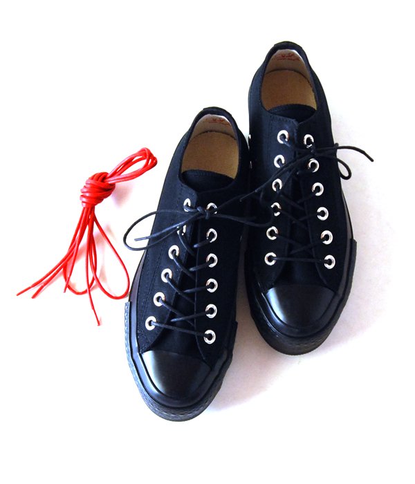 やや厚めなソールが特徴のキャンバススニーカー。ボディ同色と差し色の2色のシューレースを付属しており、コーディネートに合わせて楽しめます。