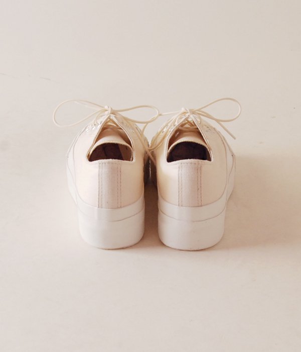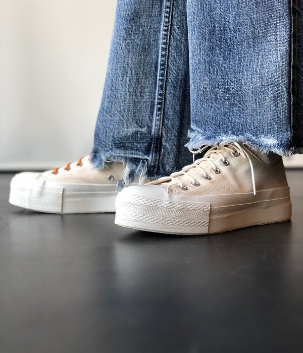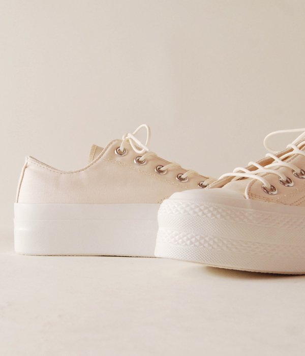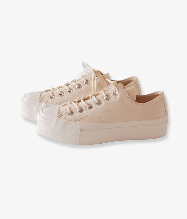 やや厚めなソールが特徴のキャンバススニーカー。ボディ同色と差し色の2色のシューレースを付属しており、コーディネートに合わせて楽しめます。