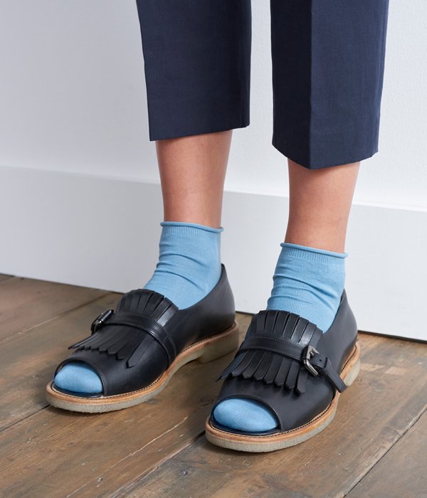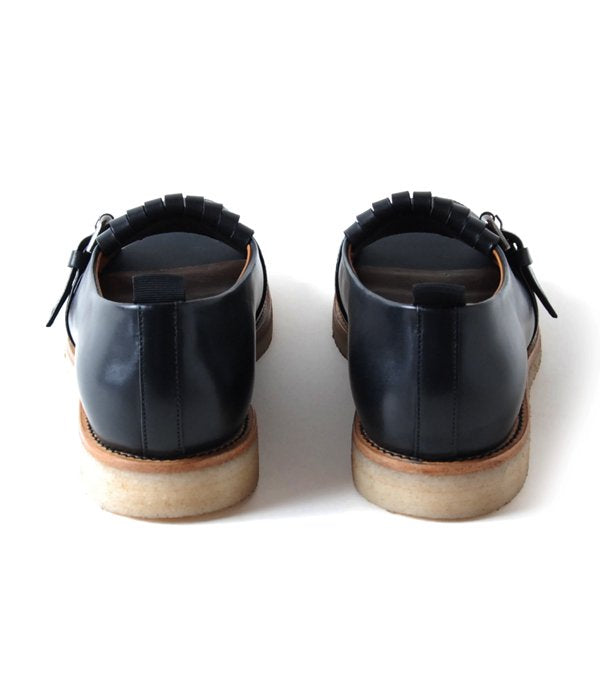 イギリスのスクールシューズを元にデザインしたクラシックデザインシューズ。つま先の空いた個性的なデザインに、天然のクレープソールを使用した快適な履き心地。