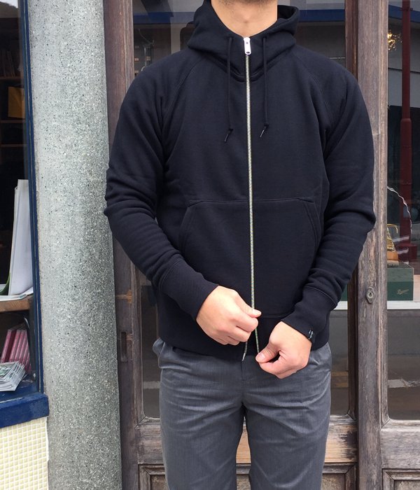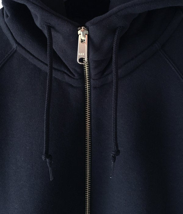 LOOPWHEELER x MHL.による美しいフードの立ち上がりが目を惹くP/O HOODIE。ラグランスリーブ仕上げの着心地の良さや、ヴィンテージライクな長めの設計のリブが雰囲気抜群。袖口のネームタグは別注ならではの限定カラーとなっています。ダブルジップ仕様です。