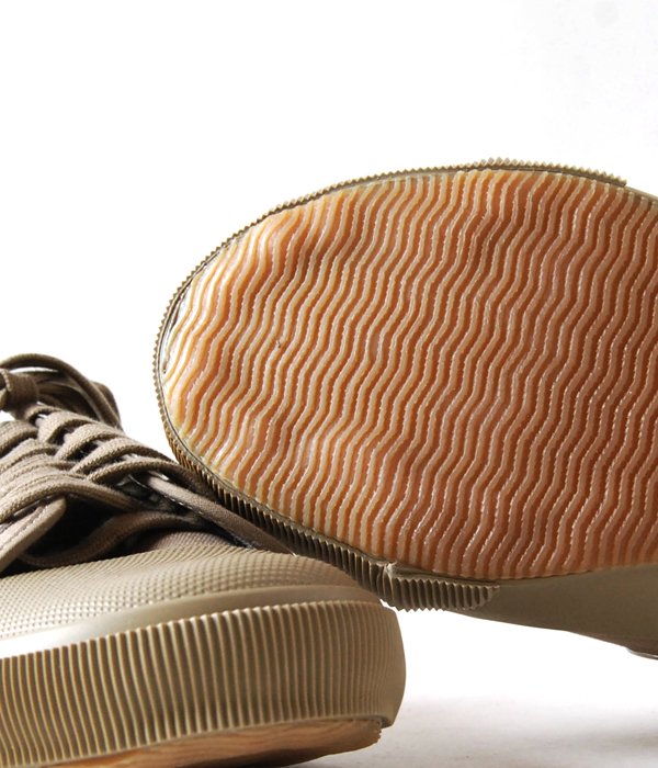 アーミーシューズをベースとしたコットン素材スニーカー。日本人の足型に合った木型を用い、バルカナイズ式製法で仕上げた確かな仕上がり。