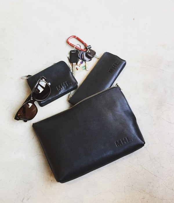 MHL.から、BASIC LEATHER PENCIL CASEが入荷しました。横長タイプの牛革製ペンシルケース型ポーチ。L字にラウンドしたファスナーで出し入れもスムーズに。文房具等をひとまとめに収納できます。MHL.の型押しロゴが目印です。