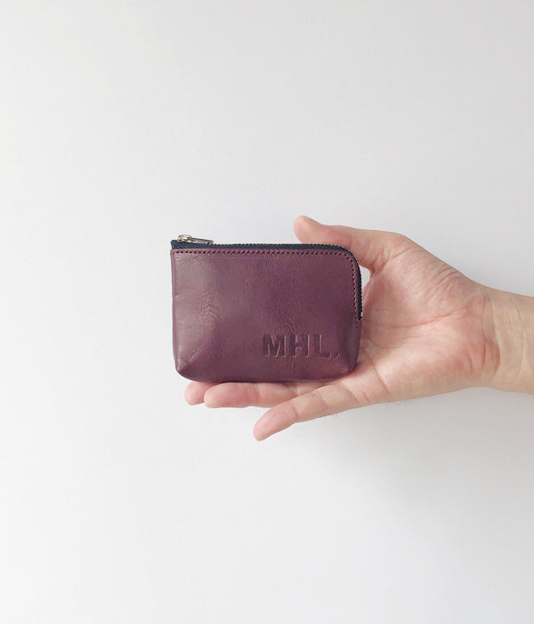 MHL.から、BASIC LEATHER POUCH Mが入荷しました。牛革製の小型ポーチ。L字にラウンドしたファスナーで出し入れもスムーズに。Sサイズよりひとまわり大きい定番のサイズ感で、こまごました収納から、カード等の収納にもぴったりです。ミニマムな財布としても◎。MHL.の型押しロゴが目印です。