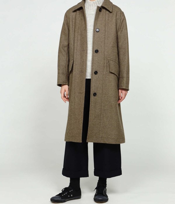 MHL.から、BASIC WOOL MELTON COAT WOMENSが入荷しました。コシのある上質なウール素材を使用したステンカラーコート。大きなフラップを携えたポケットに、ややゆったりとしたサイジングに仕立てました。一着あると心強いBASICな一着です。