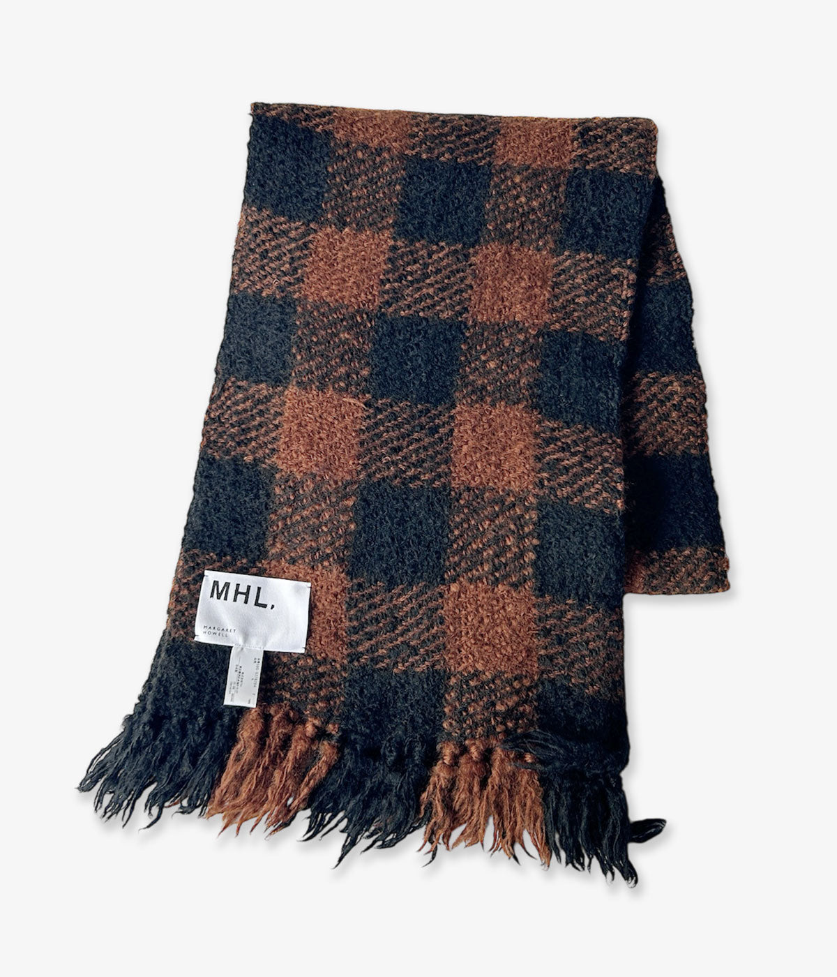 MHL.から、CHUNKY WOOL CHECK SCARFが入荷しました。凹凸のあるスラブ感があり、ナチュラルでラフな風合いを感じさせるウールマフラー。落ち着いたトーンの2色構成のブロックチェックが季節感を与えてくれます。先端のフリンジがアクセントに。ユニセックスで使えるデザイン。