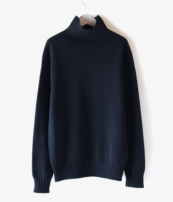 軽く温かみのあるウール素材のタートルネックニット。ホールガーメントで編み上げる事でシームレスになっており、縫い目のないデザインが特徴。