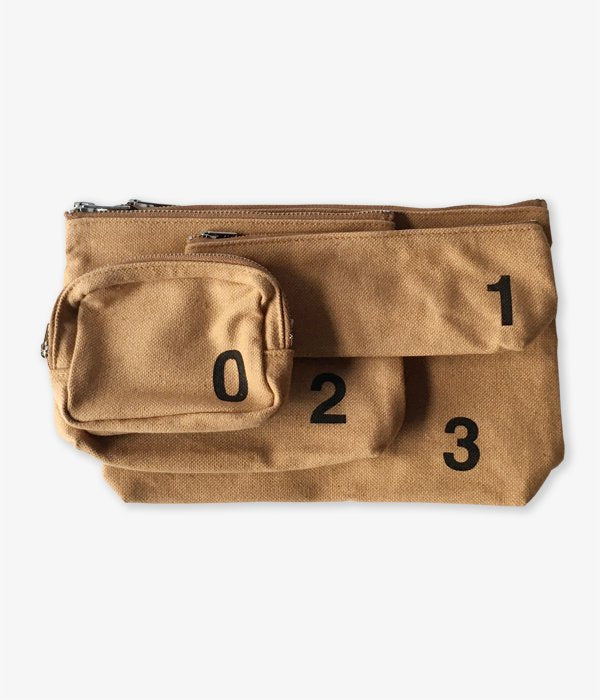MHL.から、COLOURED COTTON CANVAS POUCHが入荷しました。各サイズごとに番号をプリントしたナンバリングポーチ。リップなどのコスメサイズから、ペンケース、ガジェットケースなど様々な使い勝手に対応するMHL.の人気アイテム。