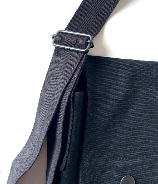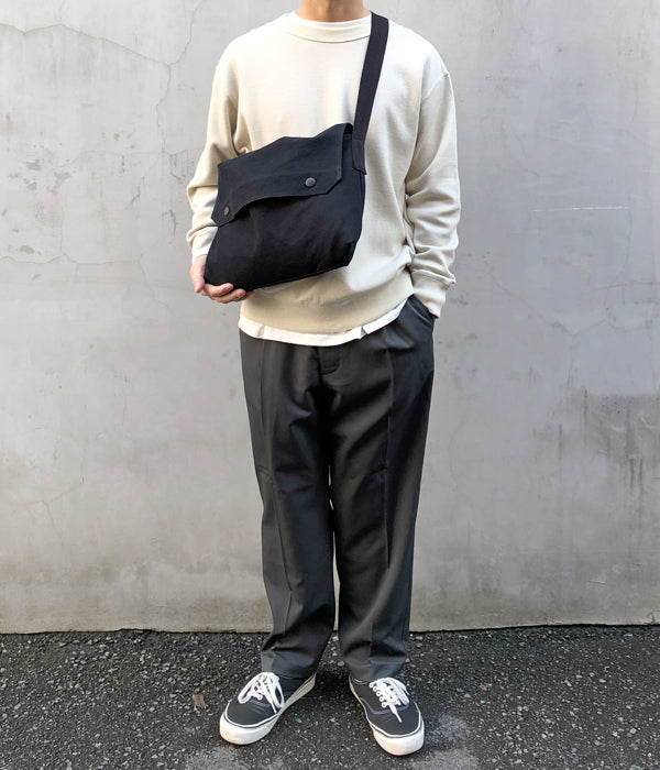 MHL.から、COTTON CANVASが入荷しました。厚手でタフな質感のコットン素材を使用したショルダーバッグ。スナップボタン締めのフラップとMHL.のロゴがアクセント。内部には小分けの収納が備えてあり、整理した荷物の収納が可能。ショルダーストラップはサイズ調整可能です。