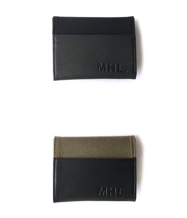 MHL.から、COTTON CANVAS COIN CASEが入荷しました。タフなキャンバス素材と牛革によるコンビデザインのコインケース。表裏にそれぞれカード収納が備わっており、必要最低限のカードは一緒に収めることが出来ます。