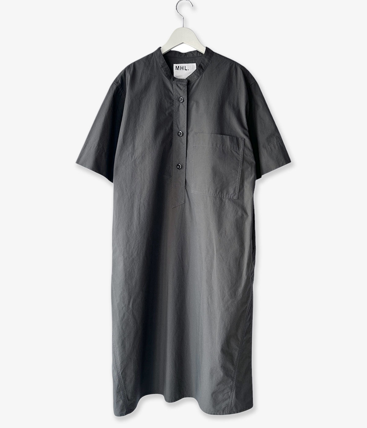 MHL.から、COTTON CORD SHIRTING OPが入荷しました。肌離れの良いドライな質感のオーガニックコットン製プルオーバーワンピース。スタンドカラーに仕立て、ゆったりとしたシルエットにデザインされた暑い時期にもおすすめの1着。太目の前立てに大きめのボタン、サイドの三角に当てられたマチがポイント。サイドにポケットが付きます。