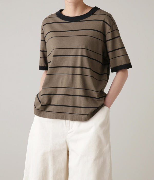 MHL./COTTON LINEN STRIPE JERSEY SS WOMENS (BROWN)