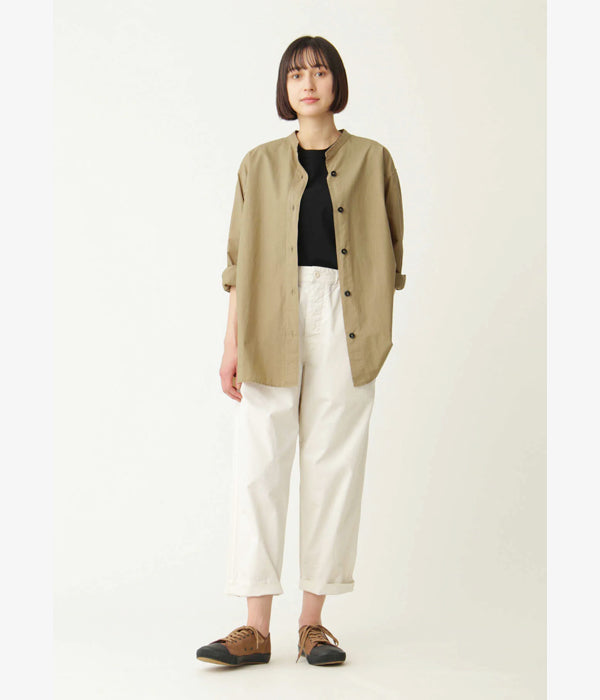MHL.から、COTTON RAMIE POPLIN SHIRTS WOMENSが入荷しました。ハリのある質感が特徴のコットンリネン素材を使用したスタンドカラーシャツ。大きめのボタンでカジュアル度が高く、トップボタンを排したラフなネックラインがポイント。前後で長さを変えた着丈、大きめのセンタープリーツもアクセントに。