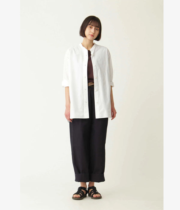 MHL.から、COTTON RAMIE POPLIN SHIRTS WOMENSが入荷しました。ハリのある質感が特徴のコットンリネン素材を使用したスタンドカラーシャツ。大きめのボタンでカジュアル度が高く、トップボタンを排したラフなネックラインがポイント。前後で長さを変えた着丈、大きめのセンタープリーツもアクセントに。