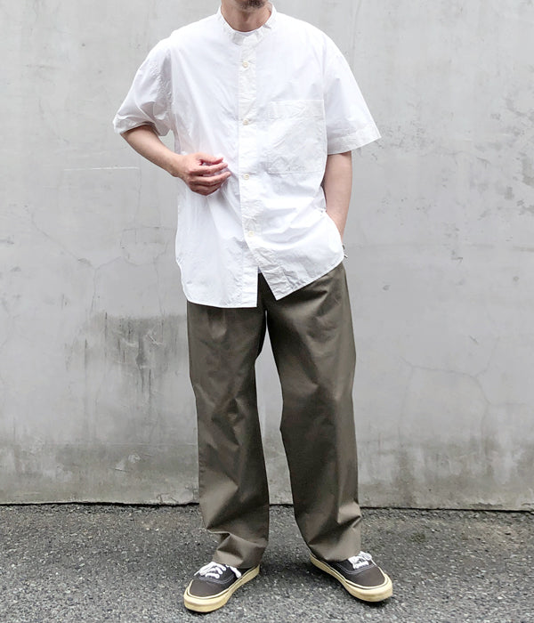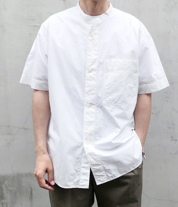 MHL.から、COTTON RAMIE POPLIN SS SHIRTが入荷しました。コットンラミー素材を使用した半袖シャツ。スタンドカラーに大きなバストポケット、トップボタンはあえて外したラフな襟元が特徴。薄手でハリのある肌当たりで麻の質感はあえて感じさせず、通気性の良さに照準を絞った素材使いが見事な1着。