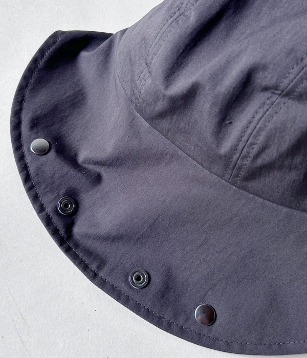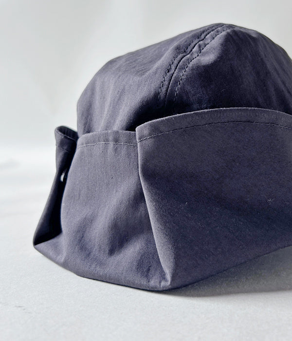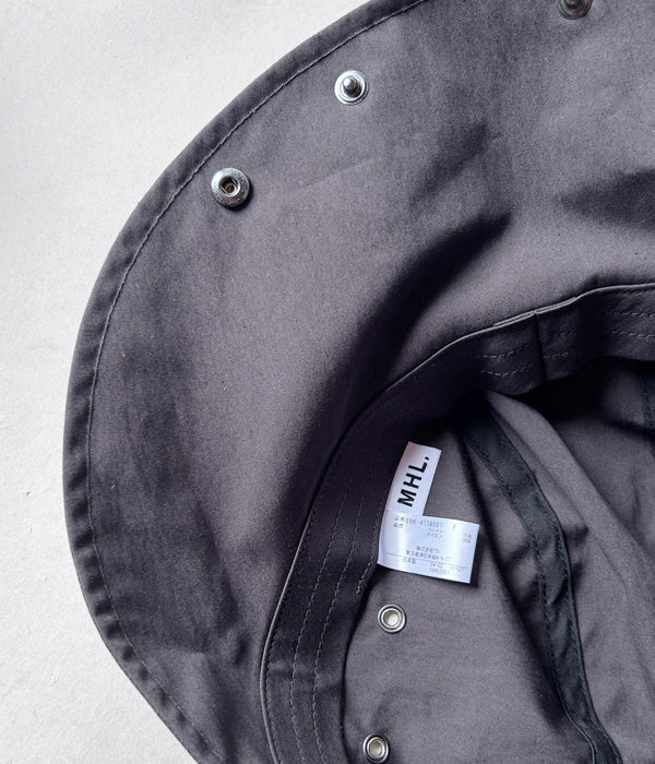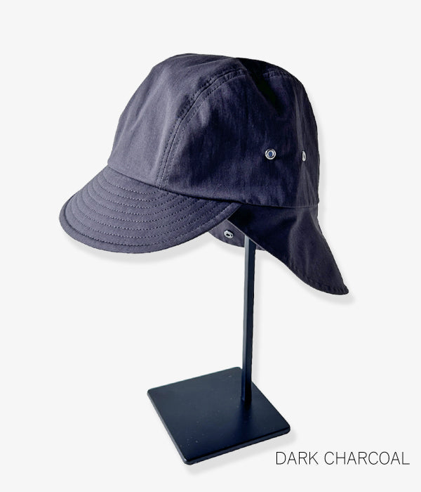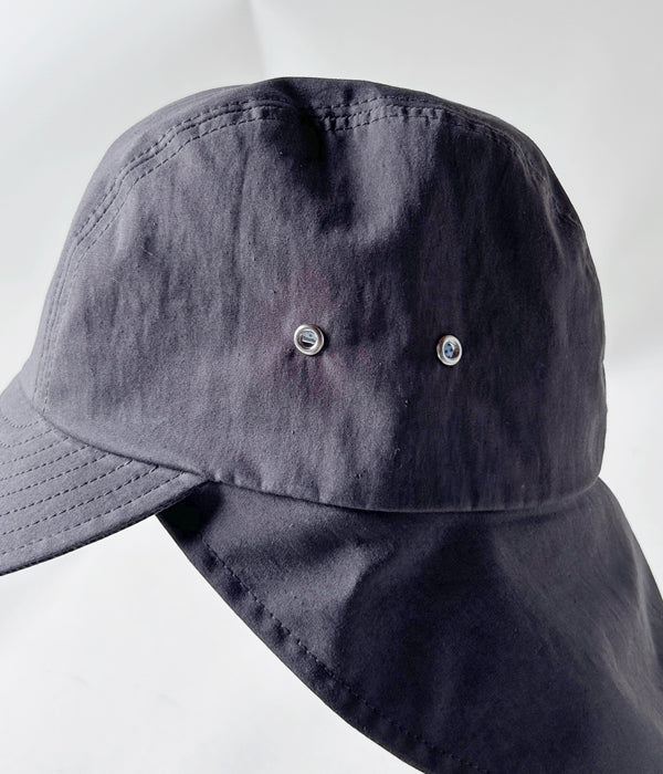 MHL.から、DENSE COTTON NYLON CAPが入荷しました。コットンナイロン素材を使用した、丸型フォルムのユニークな形状の帽子。ネックカバー付きの日差しを遮るデザインには、スナップボタンで収納可能なギミックを備え、デザインと機能性による2WAY仕様。