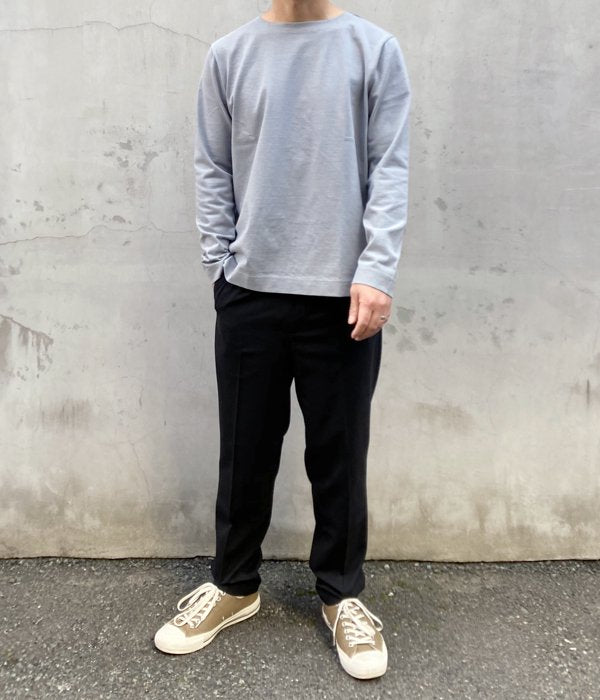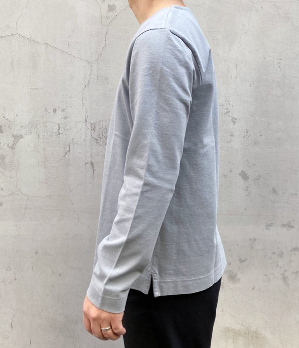 MHL.から、DRY COTTON JERSEY LSが入荷しました。リブを設けずボディと同生地による襟ぐりがすっきりとした印象のLS T-SHIRT。ドライでしっかりとしたコットン生地を使用し、シンプルながらも存在感のある一着。裾にスリットを入れたデザイン。