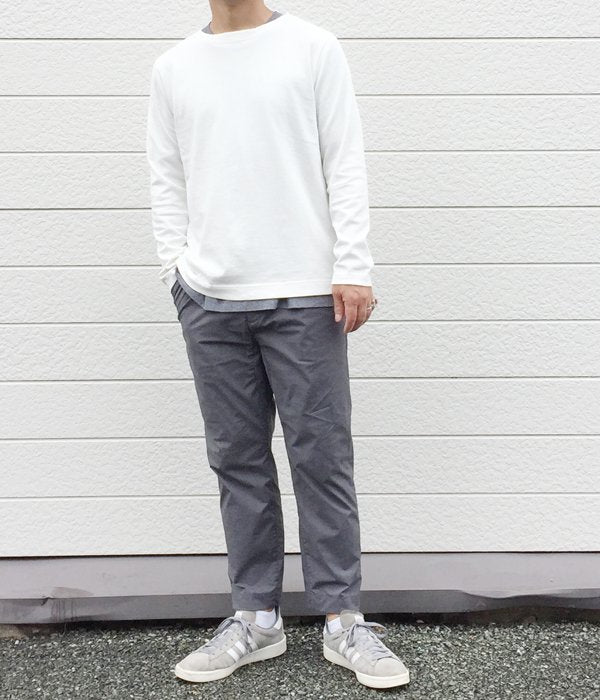 MHL.から、DRY COTTON JERSEY LSが入荷しました。さらっとしたコシのあるコットン素材を使用した長袖T-SHIRTSは、なにかと使い勝手の良い万能アイテム。サイドスリットが入ったデザインに、襟元のリブは共地で折り返し上品な印象に。