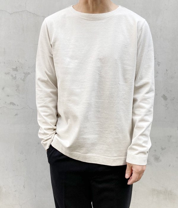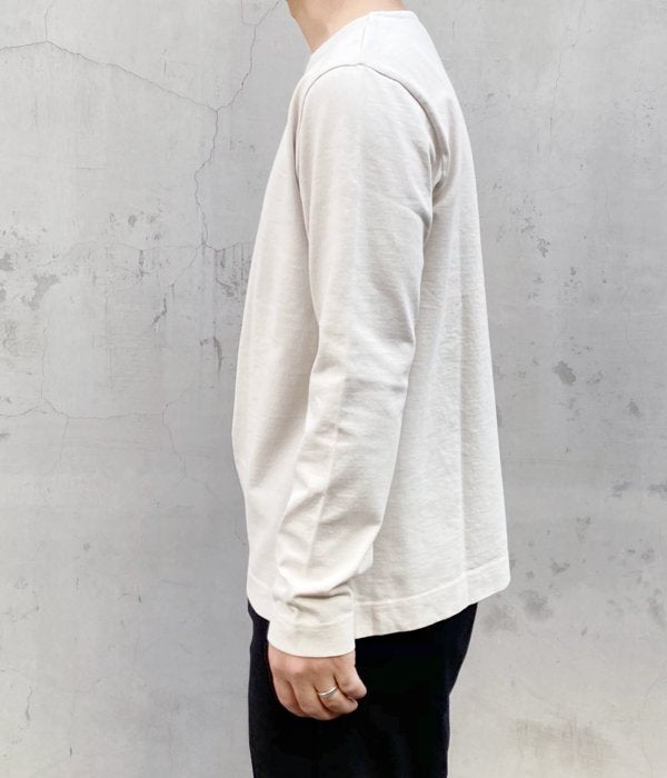 MHL.から、DRY COTTON JERSEY LSが入荷しました。リブを設けずボディと同生地による襟ぐりがすっきりとした印象のLS T-SHIRT。ドライでしっかりとしたコットン生地を使用し、シンプルながらも存在感のある一着。裾にスリットを入れたデザイン。