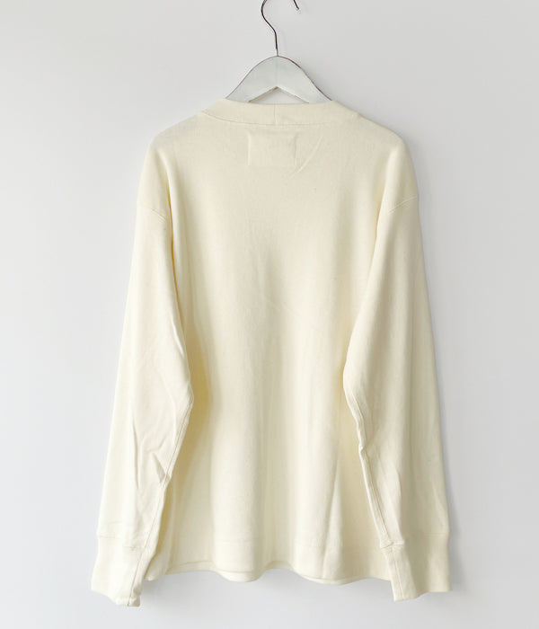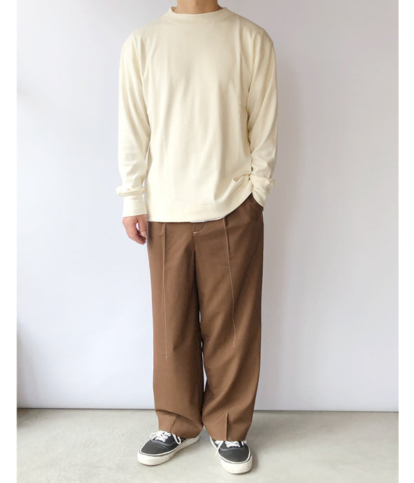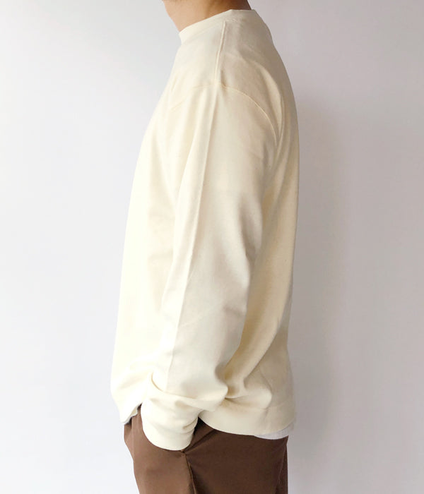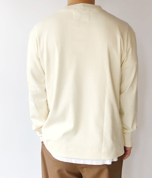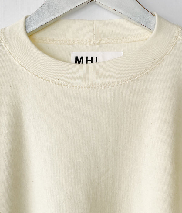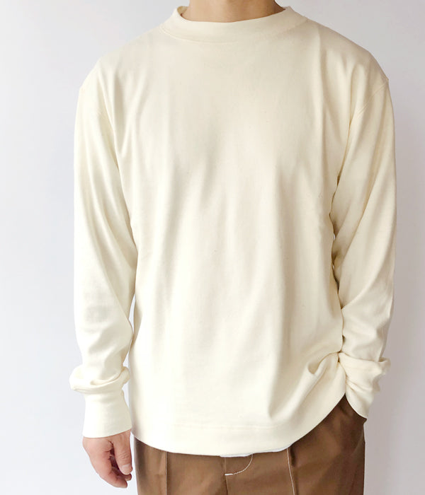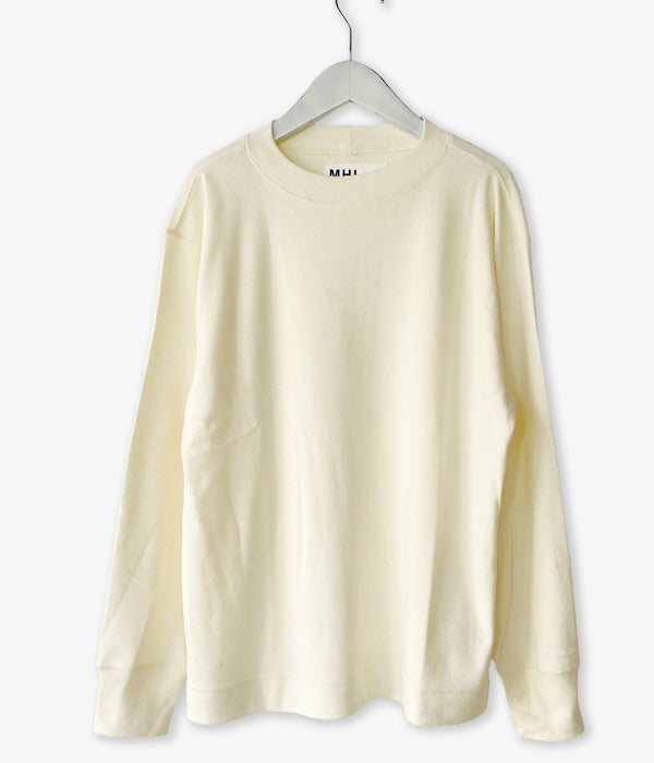 MHL.から、DRY COTTON WOOL RIB LSが入荷しました。ふっくらとした質感とムラのある風合いが特徴的なウールコットン素材のカットソー。保温性の高い素材感と、やや高めに設計された襟元が印象的な季節に合った一着となります。