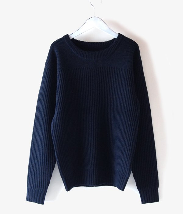 軽く膨らみのあるウール素材のニット。ゆとりのあるサイズ感、編地の変化など、シンプルながらこだわりのある一枚。