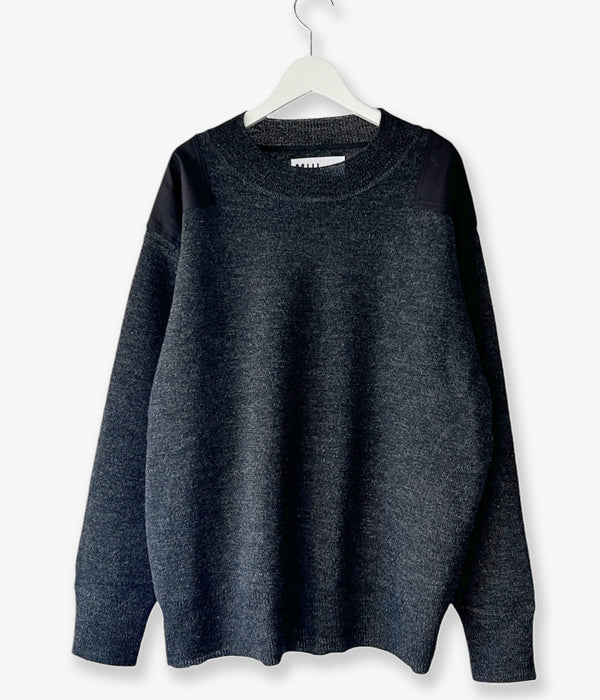 MHL./DRY MERINO WOOL CREW KNIT (DARK CHARCOAL)