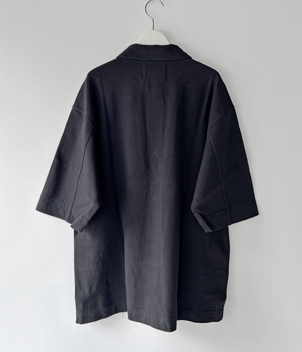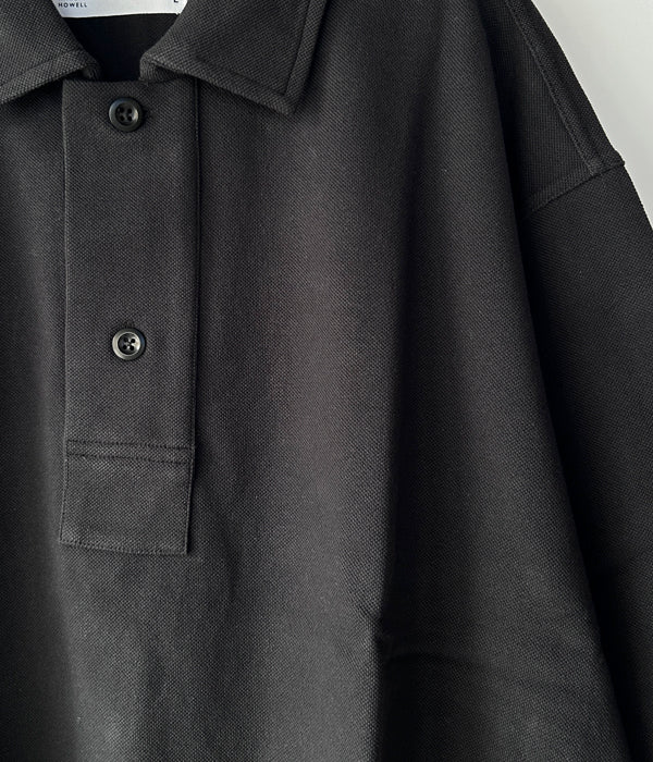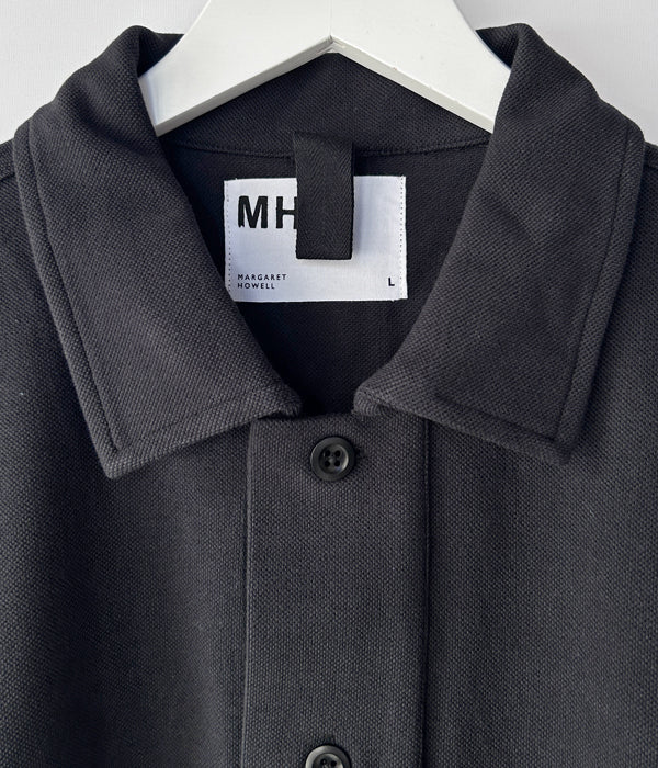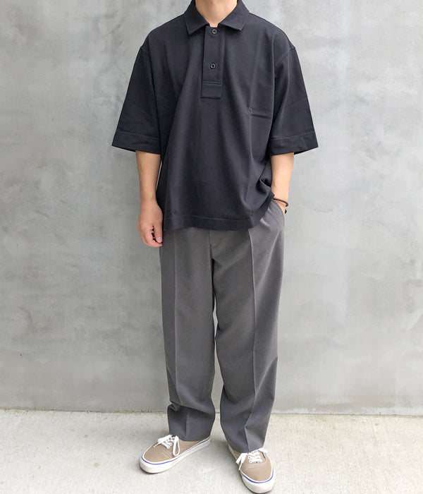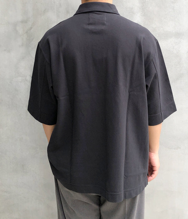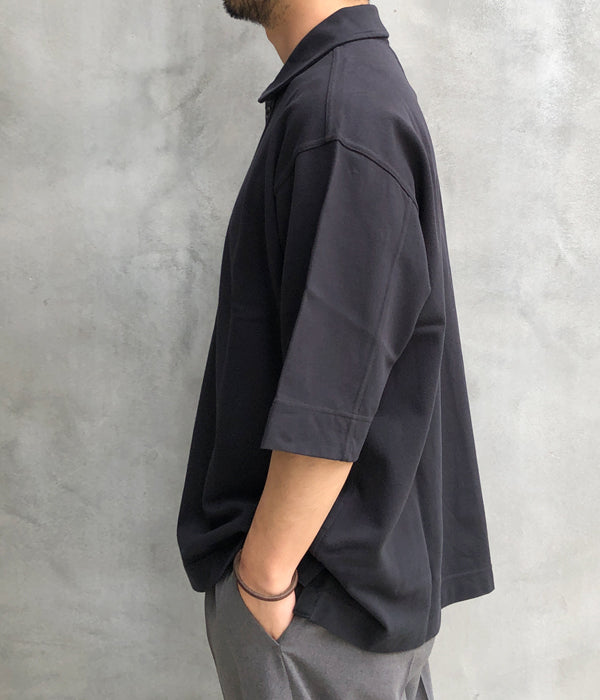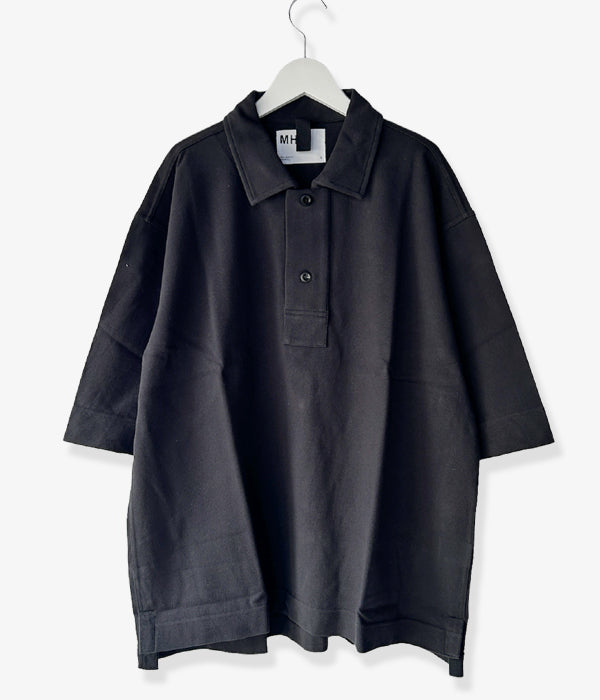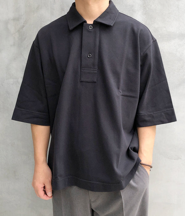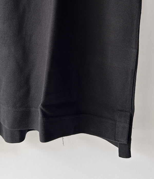 MHL.から、DRY PIQUE JERSEY POLO SSが入荷しました。程よく肉厚感のあるピケ素材を使用したポロシャツ。幅の広い前立ては上下で幅が異なり、オープンした際の見え方が面白いデザイン。長めの袖丈にゆったりとしたシルエット、前後異なる丈の裾にはスリットをあしらいました。