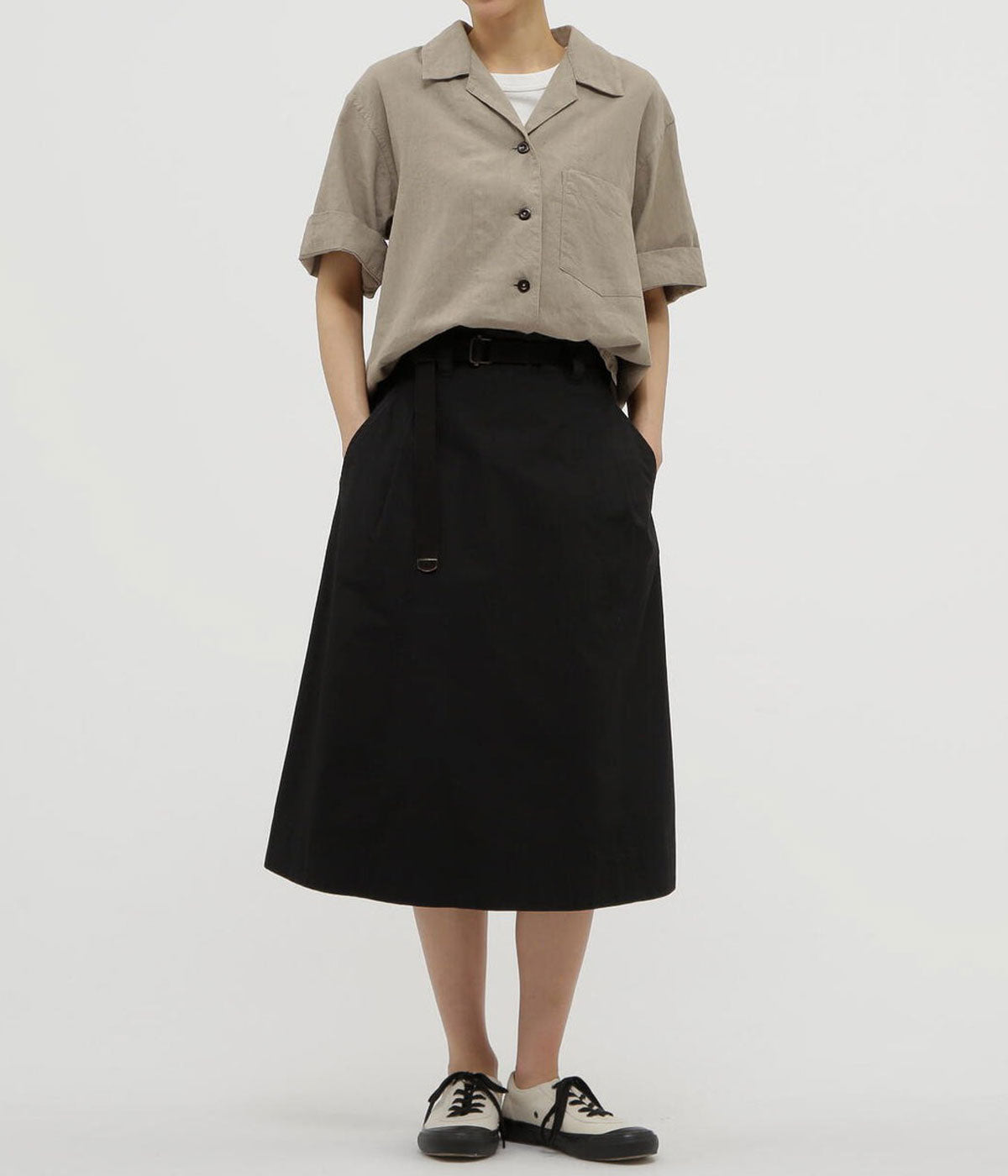 MHL./FINE COMPACT COTTON POPLIN SKIRT (BLACK)