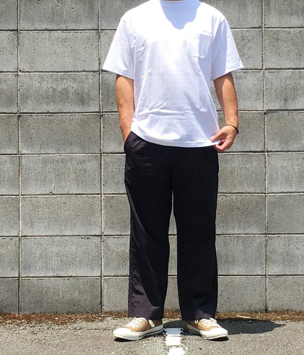 バックフロントにゴムを仕込んだ楽な着用感のパンツです。さらっとしたハリが有り涼しげな履き心地は夏場におすすめな一着です。ベルトループはしかっり設けています。