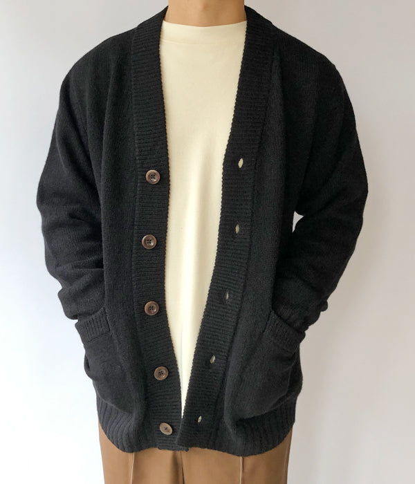 MHL./FINE SHETLAND CARDIGAN (BLACK)