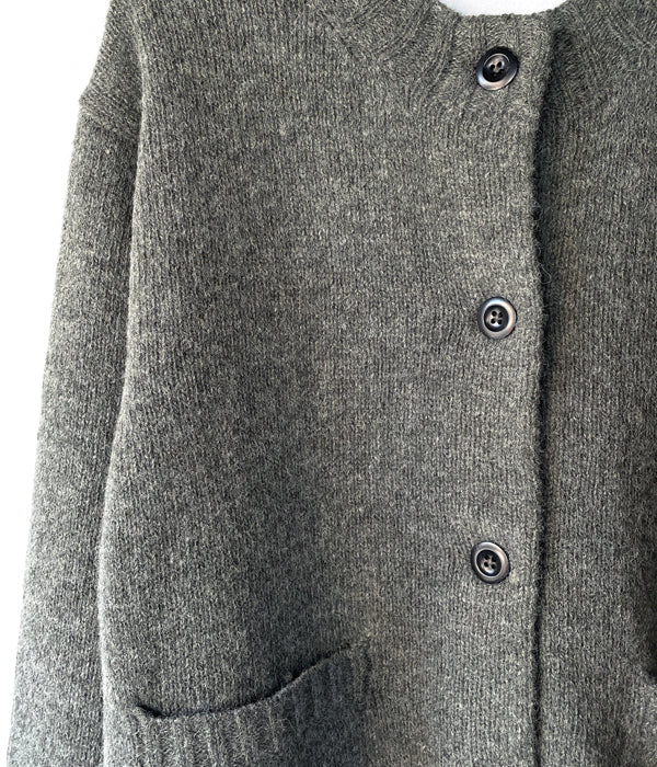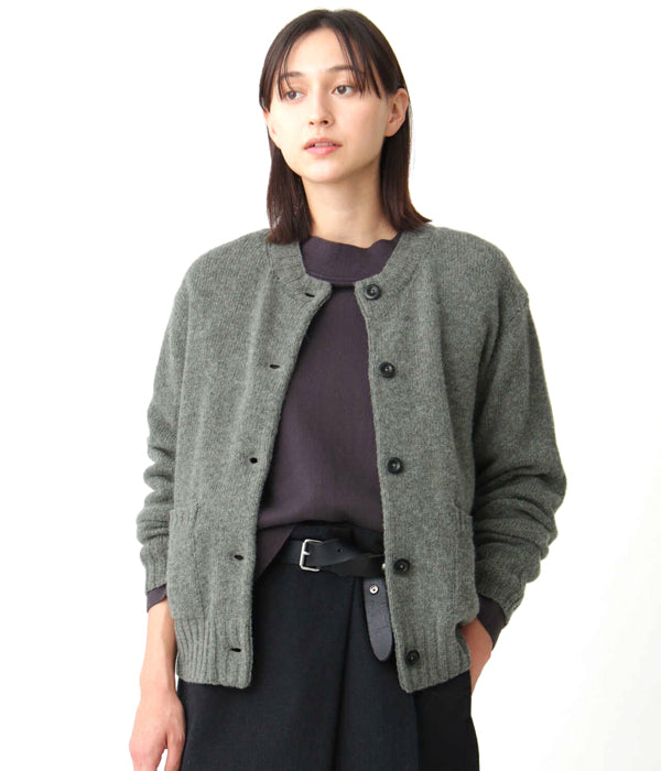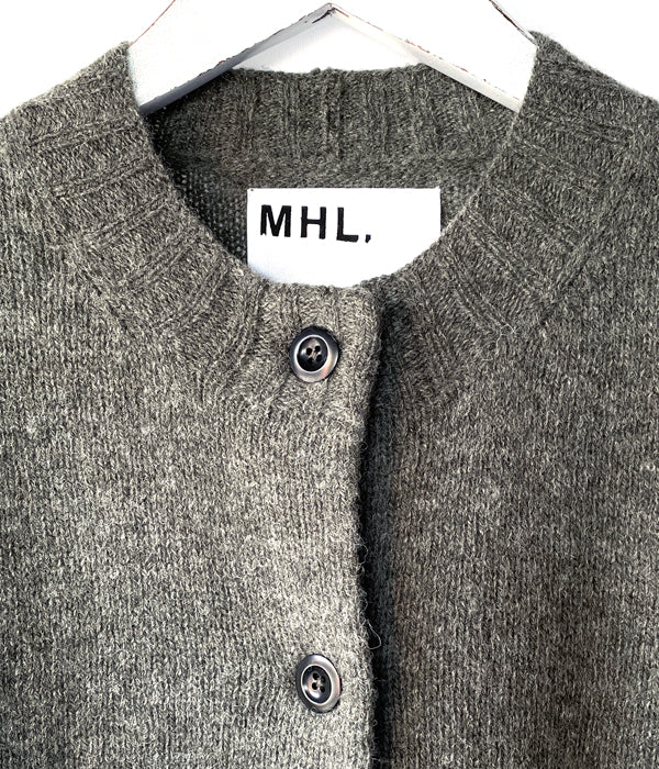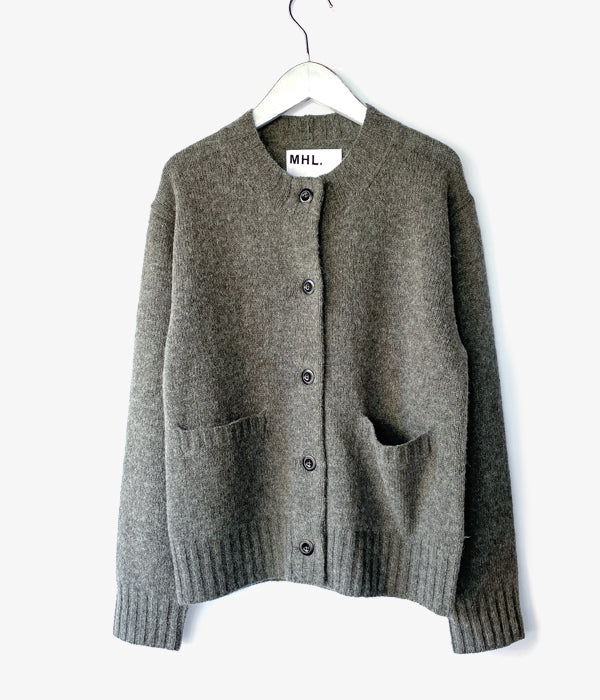 MHL.から、FINE SHETLAND CARDIGAN WOMENSが入荷しました。シェットランドウールを使用し、ふっくらとしたローゲージで編み上げたレディースカーディガン。クルーネックの襟元、要所をリブ編みに切り替えたシンプルなデザイン。ゆとりのあるボックスシルエットに2か所のポケットを設けます。