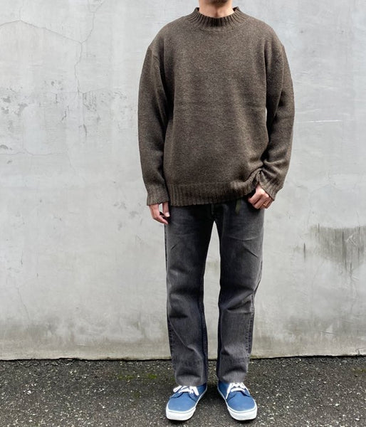 MHL.から、FINE SHETLAND KNITが入荷しました。保温性の良いシェットランドウールを使用し、ローゲージで編み上げたセーターです。高めのえり幅と裾のリブ編みがポイント。軽くて着心地が非常に良いニットアイテムです。