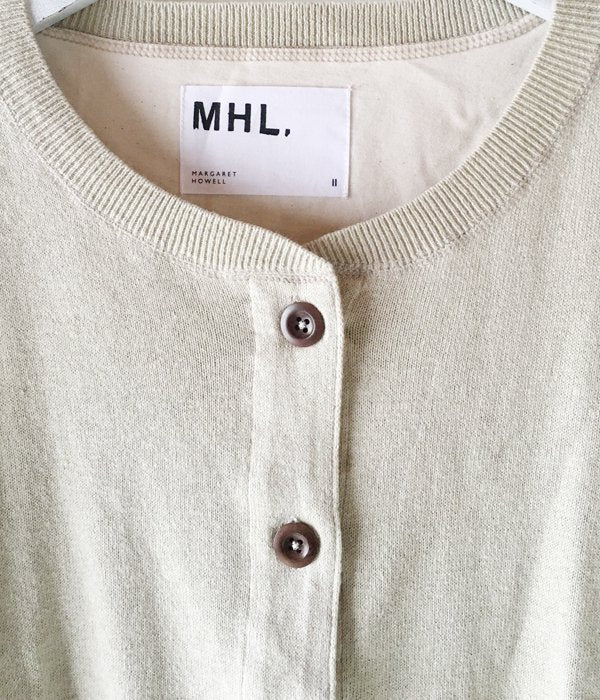 MHL.から、FINE SLUB COTTON LINEN CARDIGAN WOMENSが入荷しました。コットンリネン素材を使用したニットカーディガン。大きめのボタンがアクセント。通気性も良く季節の変わり目や、肌寒い場面で重宝する一着。