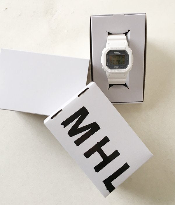 MHL.から、G-SHOCK 20SSが入荷しました。20SSの新型コラボは"DW-5600"をベースとした別注モデル。WHITE x GRAYの新色によるフェイスカラーが、G-SHOCKの武骨さを抑えたモダンな仕上がりです。男女で使えるサイズ感。