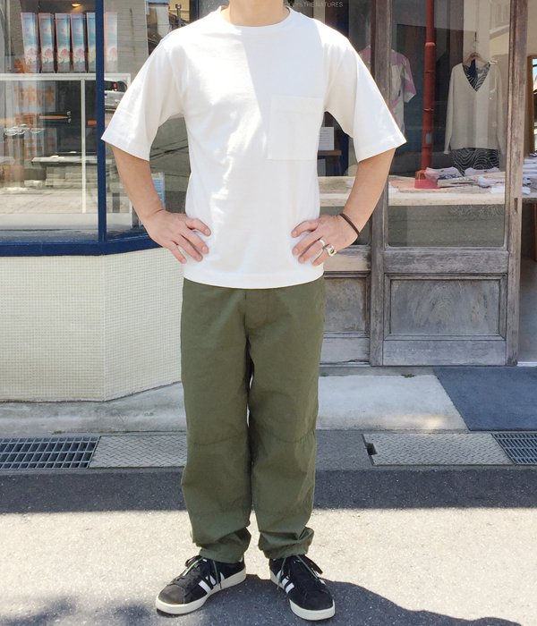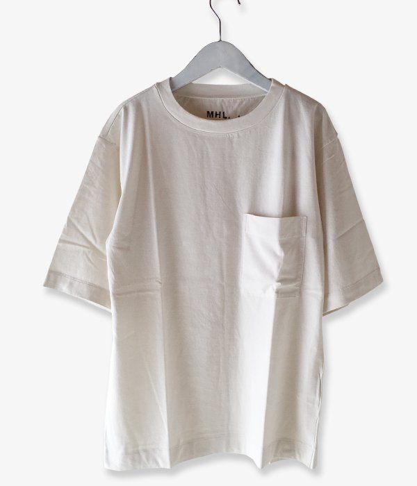 MHL.から、GARMENT DYE BASIC JERSEY SS T-SHIRTSが入荷しました。製品染めを施した柔らかな風合いのコットン生地が気持ちの良いSS T-SHIRT。ゆったりめのシルエットに、大きなポケットが存在感のある一着。タグ部分にはプリントでネームを施しています。