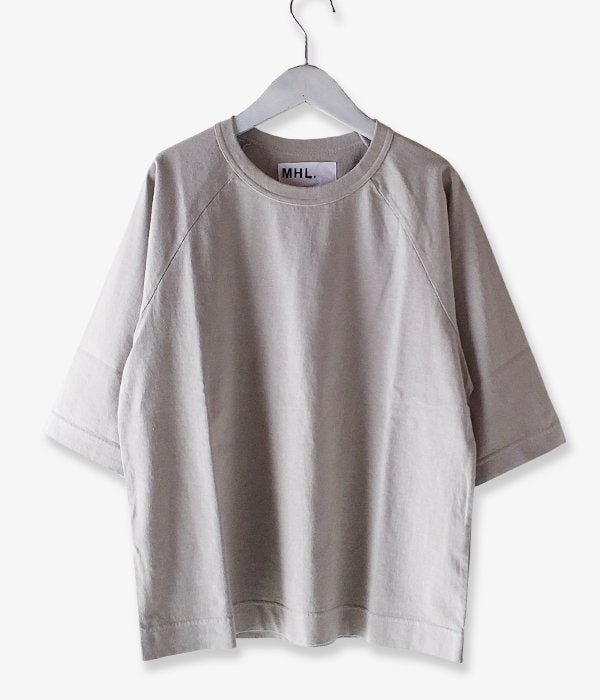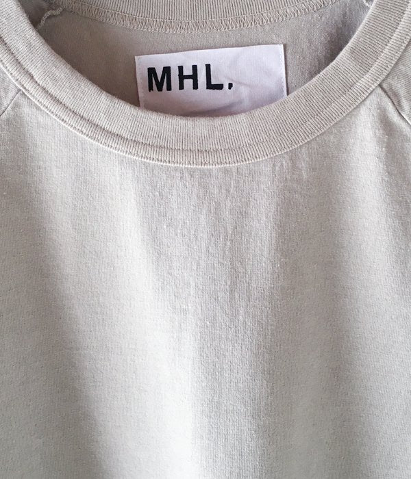 MHL.から、GARMENT DYE COTTON JERSEY T-SHIRTが入荷しました。製品染めによる味のある淡い色合いが春らしいカットソー。厚みと柔らかさを併せ持った素材感、リラックスフィットにラグランスリーブの仕立て。やや長めの設計の袖丈が印象的な一着。