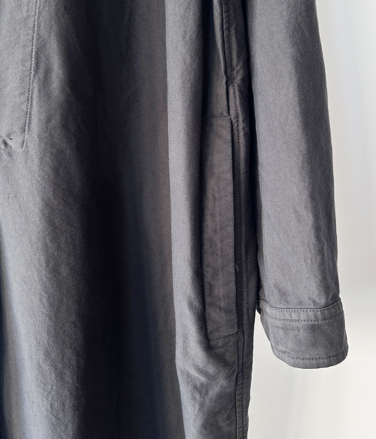 MHL.から、GARMENT DYE COTTON MOLESKIN DRESSが入荷しました。コットン製のモールスキン素材を使用した温もりを感じさせるワンピース。ガーメントダイによる馴染みの良い色合いと、バイオワッシャー加工による着込んだようなヴィンテージの風合いがポイント。大きなボタンによるハーフ プラケット、サイドにポケットを備え、背面のパッチポケットがカジュアルな雰囲気を与えてくれます。