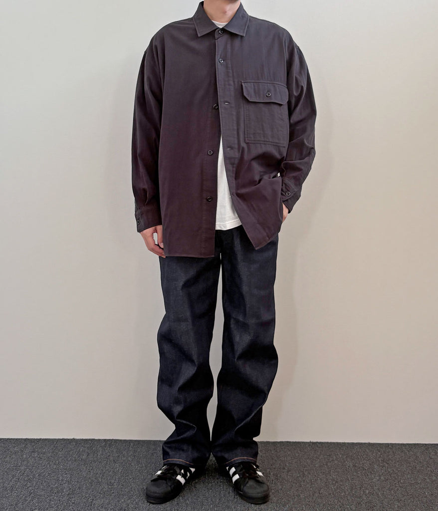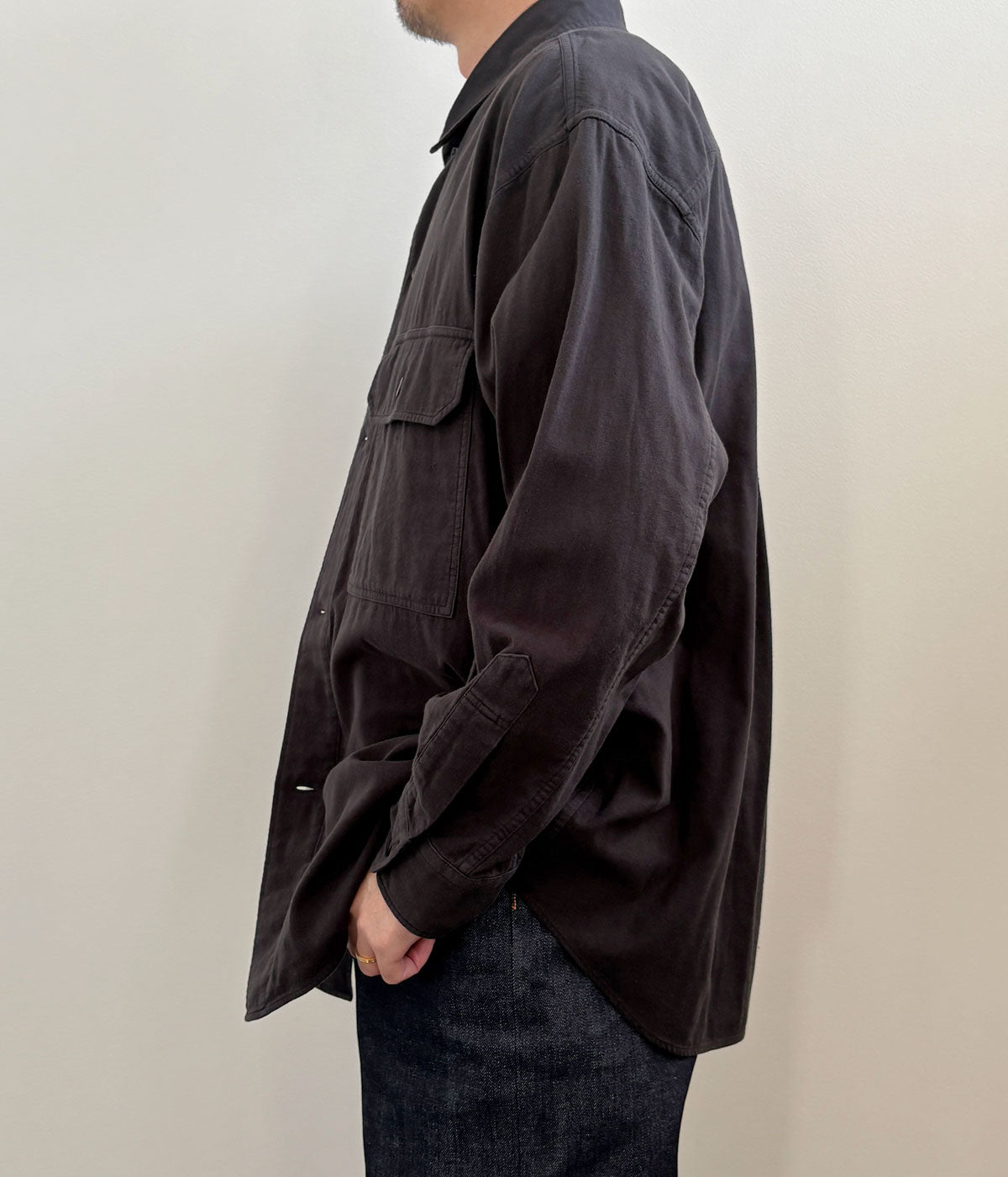 MHL.から、GARMENT DYE PLATED ORGANIC COTTON SHIRTが入荷しました。二重織りのオーガニックコットンを使用したダブルガーゼ素材のシャツ。もともとはマスク用に開発された生地なので肌当たりや着心地の良さは折り紙付きの仕上がり。さらには洗い加工&製品染めで風合いを引き出した存在感のある1着。ゆったりとしたサイジングに、フラップ付きの大きなポケット等、ワークテイストを感じるデザイン。