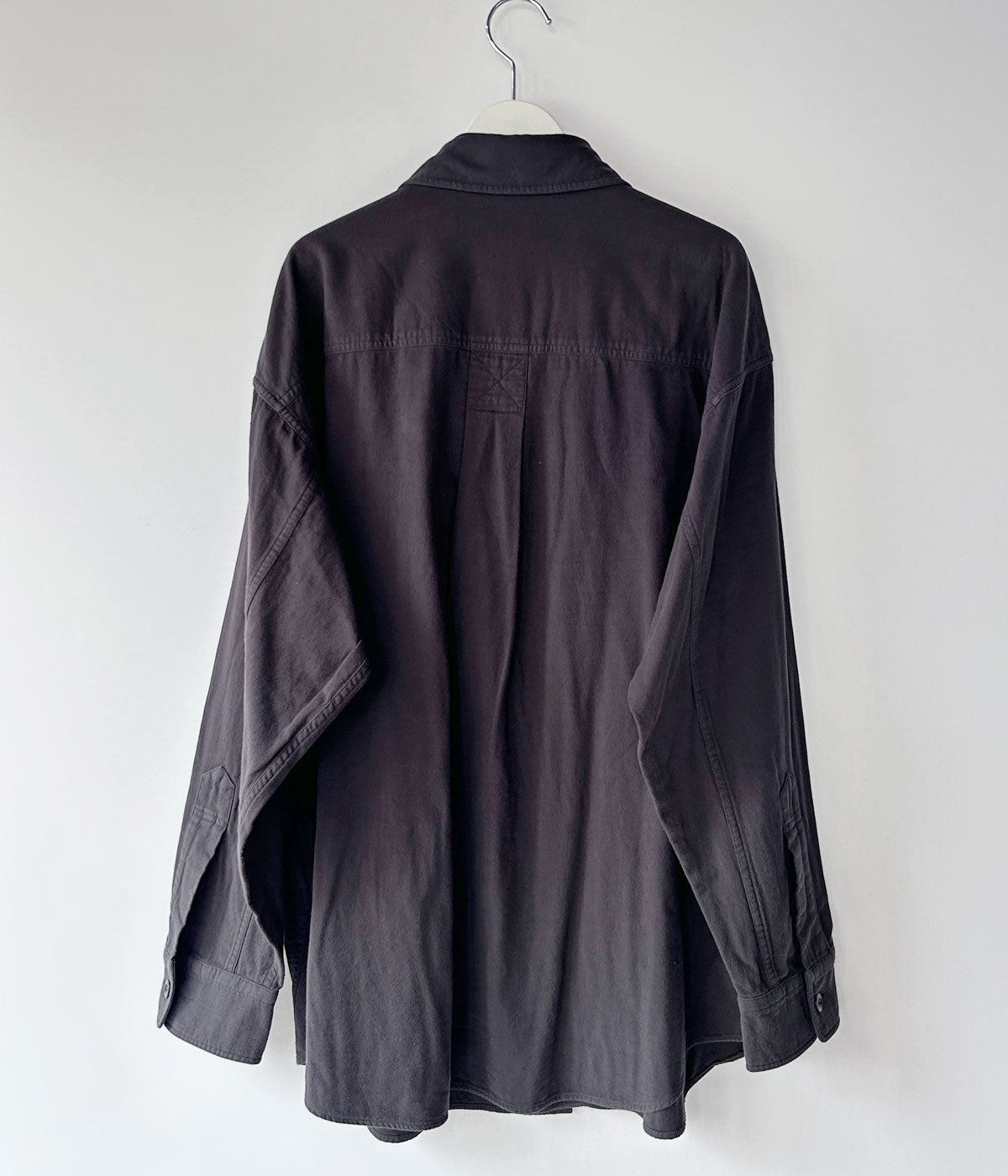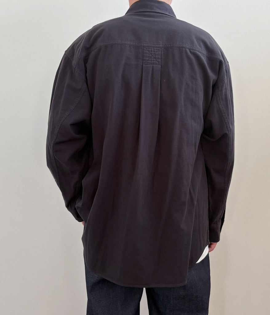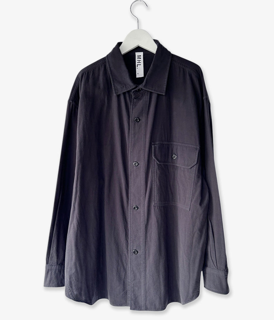 MHL./GARMENT DYE PLATED ORGANIC COTTON SHIRT (BLACK)