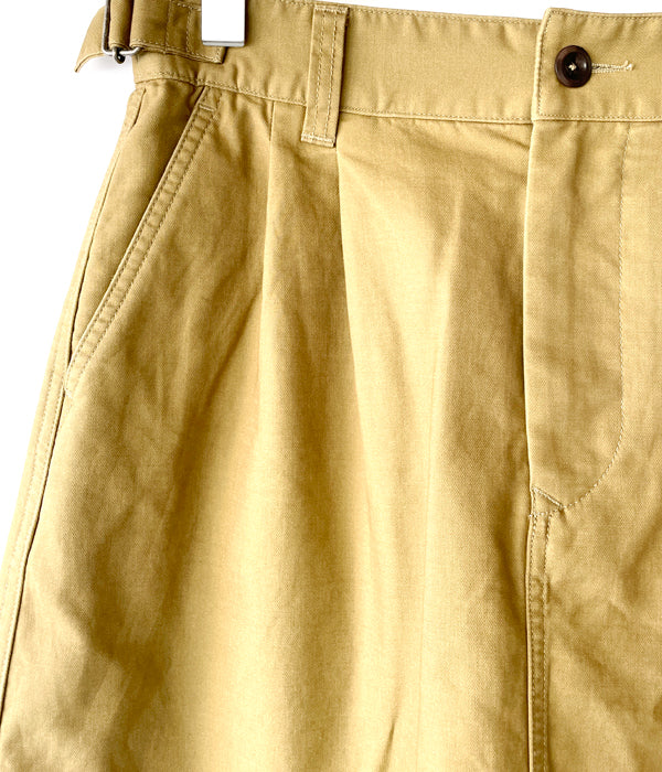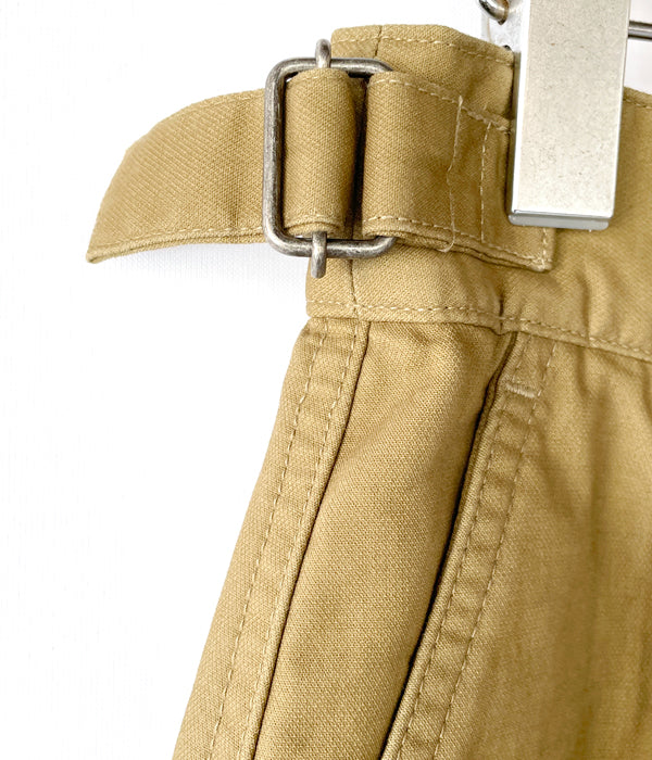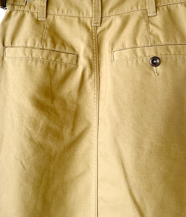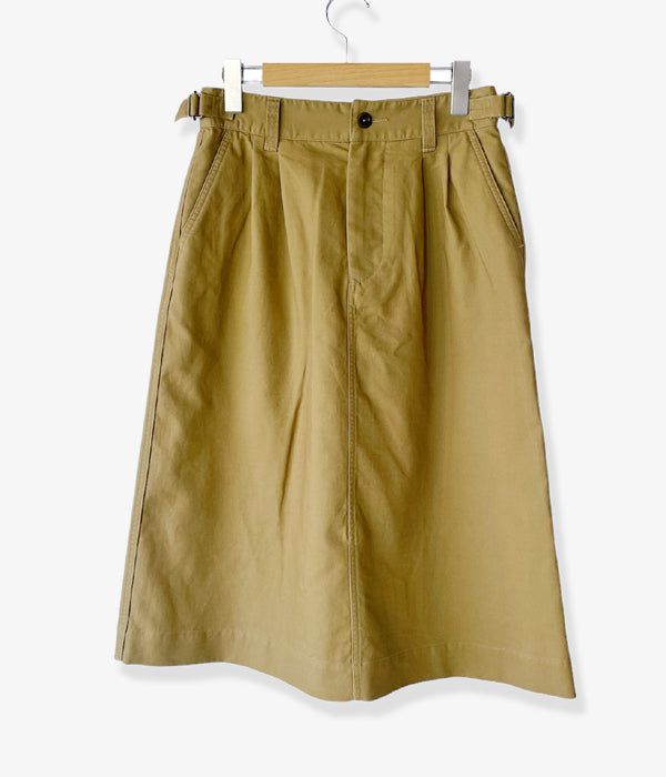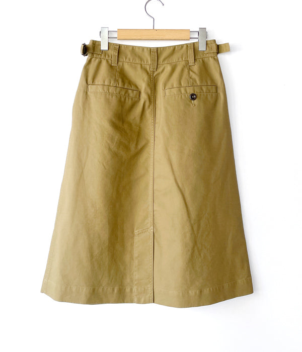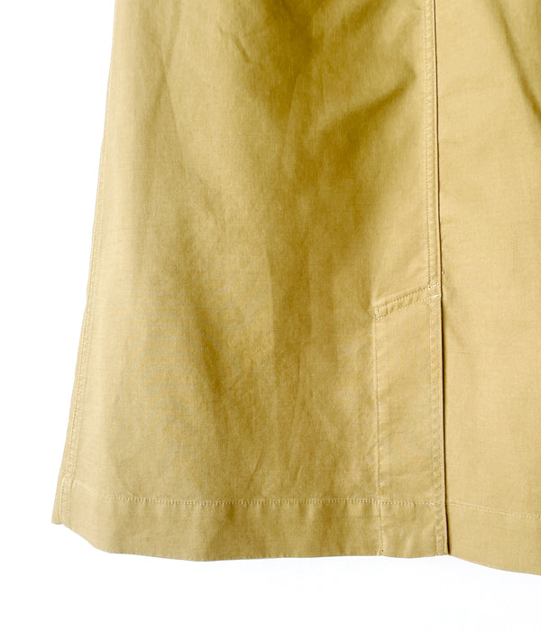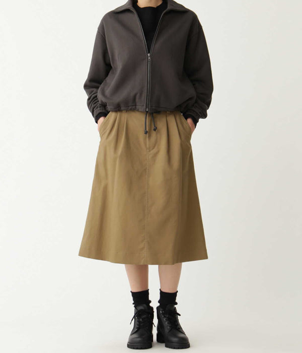 MHL.から、JAPANESE DENSE COTTON SKIRTが入荷しました。やや厚手でタフな質感ながらも、軽やかで柔らかな履き心地の良いスカート。2タックにウェストアジャスター付きのあそびのあるサイジングなので、タックイン/アウトどちらもサイズフィットが可能。バックにスリットが入ります。