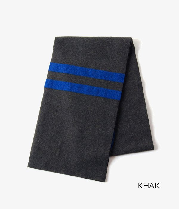 子羊の柔らかい毛を使用したWOOL MUFFLER。左右にピッチの異なるボーダーをデザインしました。巻き方によって異なる表情が魅力のひと品です。