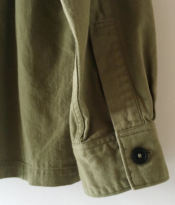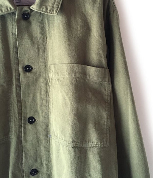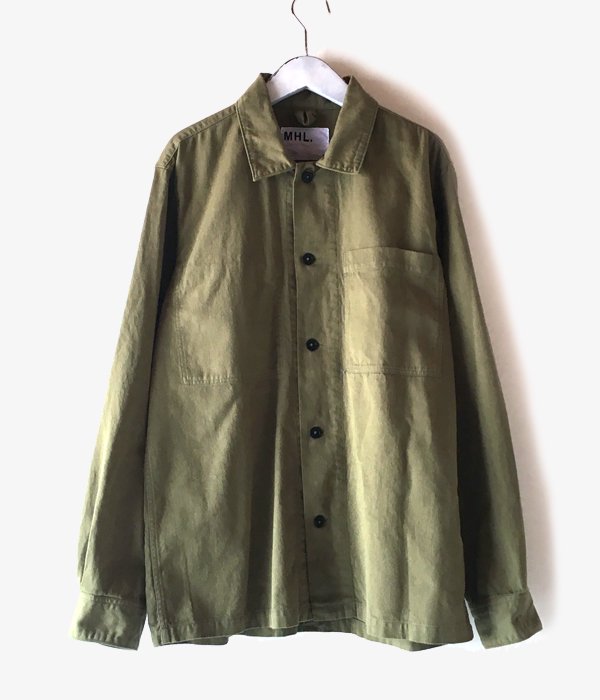 MHL.から、LIGHT COTTON TWILL SHIRTSが入荷しました。ソフトタッチなふっくらとしたコットンツイル素材を使用し、台襟を設けないことでミリタリーライクなカジュアルな印象に仕上げました。さらっと羽織りシャツジャケットの様にも着こなせる重宝する一着。バストポケットはin/outにそれぞれ配置します。