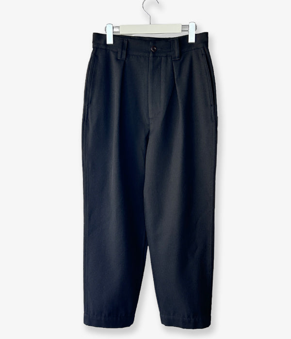 MHL.から、LIGHT COTTON WOOL DRILL PANTS WOMENSが入荷しました。コットン×ウール混紡素材を使用しインタックで仕立てたトラウザーズ。生地の綾目が美しく上品な雰囲気を与えてくれる、シンプルながらも存在感のある1着。また部分にあてたガゼットと、バックポケット片側にフラップ付きのデザイン。