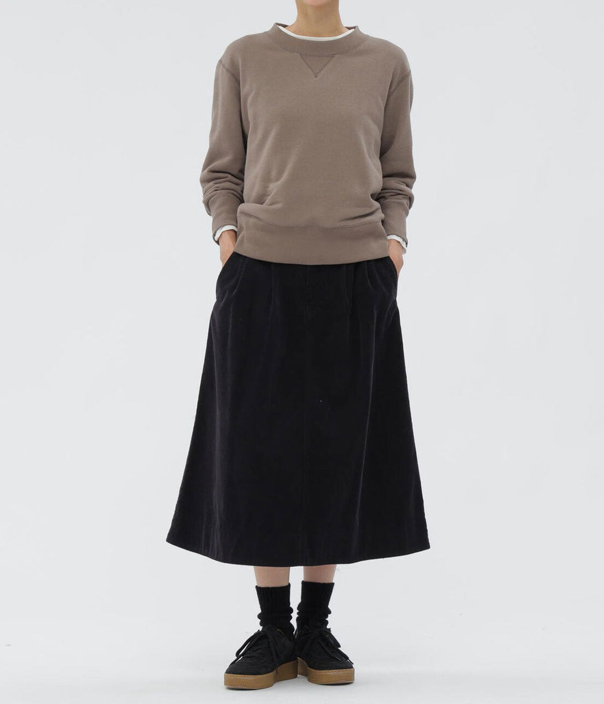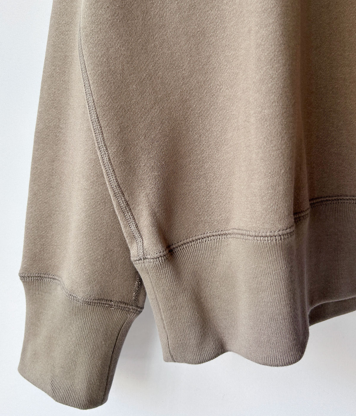 MHL.から、LIGHT LOOPBACK COTTON TOP WOMENSが入荷しました。Vガゼットに、存在感のあるリブ、吊り編み仕立てのふっくらとした質感の裏パイルによる正統派の1着。適度にゆったりとしたサイジングに仕立てた着回しのきく作りです。袖口にアイコンディテールでもあるループウィラーのネーム付き(ブラックベースにホワイトロゴなっているのはMHLオリジナルカラー)